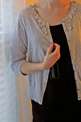 I like this tank top because of the ruffles. I just like ruffles a lot. I think I have a ruffle problem. I also like the ruching type thing that's going on the buttone of the sweater. I think it adds interest without being to much.